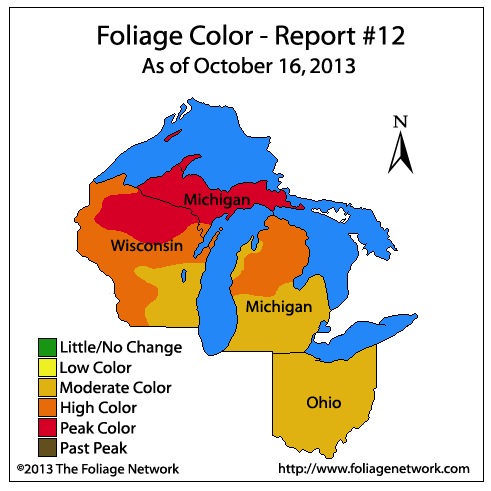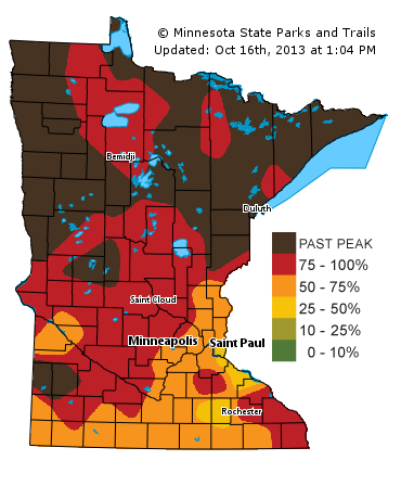 As the Midwest moves further along in the autumn season, beautiful fall colors are progressing across the region. In the northern states, locations across Minnesota (Figure 4), Wisconsin, and Michigan (Figure 5) are currently experiencing peak color and in some locations in these states, colors are already past their peak. More information on fall colors is available from the U.S. Forest Service.