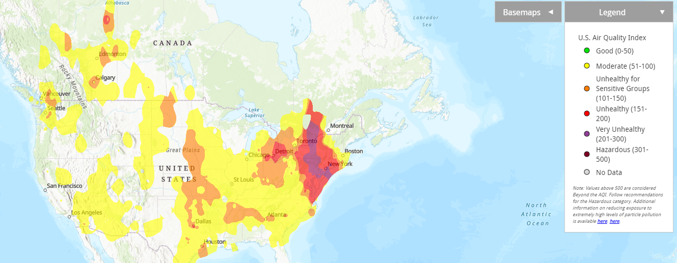 Canadian wildfires continued this week resulting in widespread air quality alerts. The US Air Quality Index exceeded 101, which impacts sensitive groups, in Midwest locations nearly every day this week. Smoke was visible at times, but did not look as ominous as the pictures out of New York City on June 7. At times, the Air Quality Index exceeded unhealthy levels. The Air Quality Index for June 7 was worst in the eastern Midwest extending to the east coast (Figure 11).