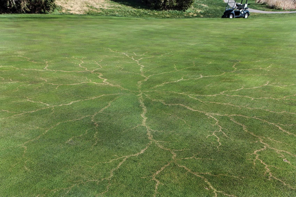 Turf damage caused by ground current from a lightning strike. Photo credit: AlGamaty on Reddit