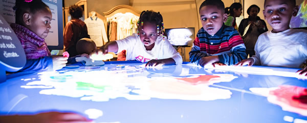 Kids exploring the climate puzzle, which was part of the "Weather to Climate: Our Changing World" exhibit at the Peggy Notebaert Nature Museum (photo courtesy of Peggy Notebaert).
